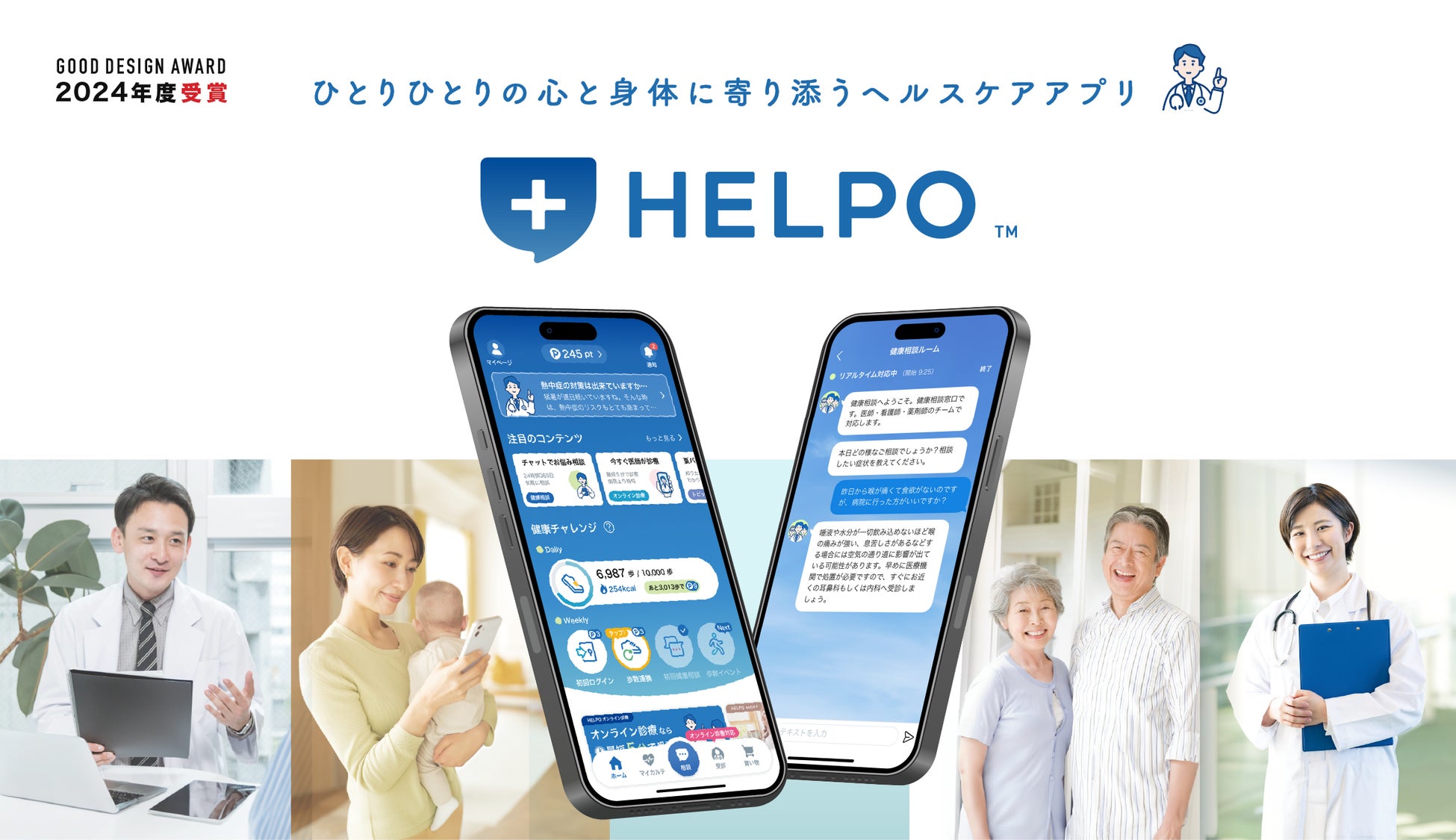 「HELPO」は 24 時間 365 日医療者のサポートを受けられるヘルスケアアプリです。未病と呼ばれる体調が悪くなり始めたときや、ちょっとした身体の不安を医師・看護師・薬剤師の医療専門チームに相談できる健康医療相談や、予約から受診、処方薬の受け取りまでスマホで完結できるオンライン診療機能など、さまざまな機能を有しています。。