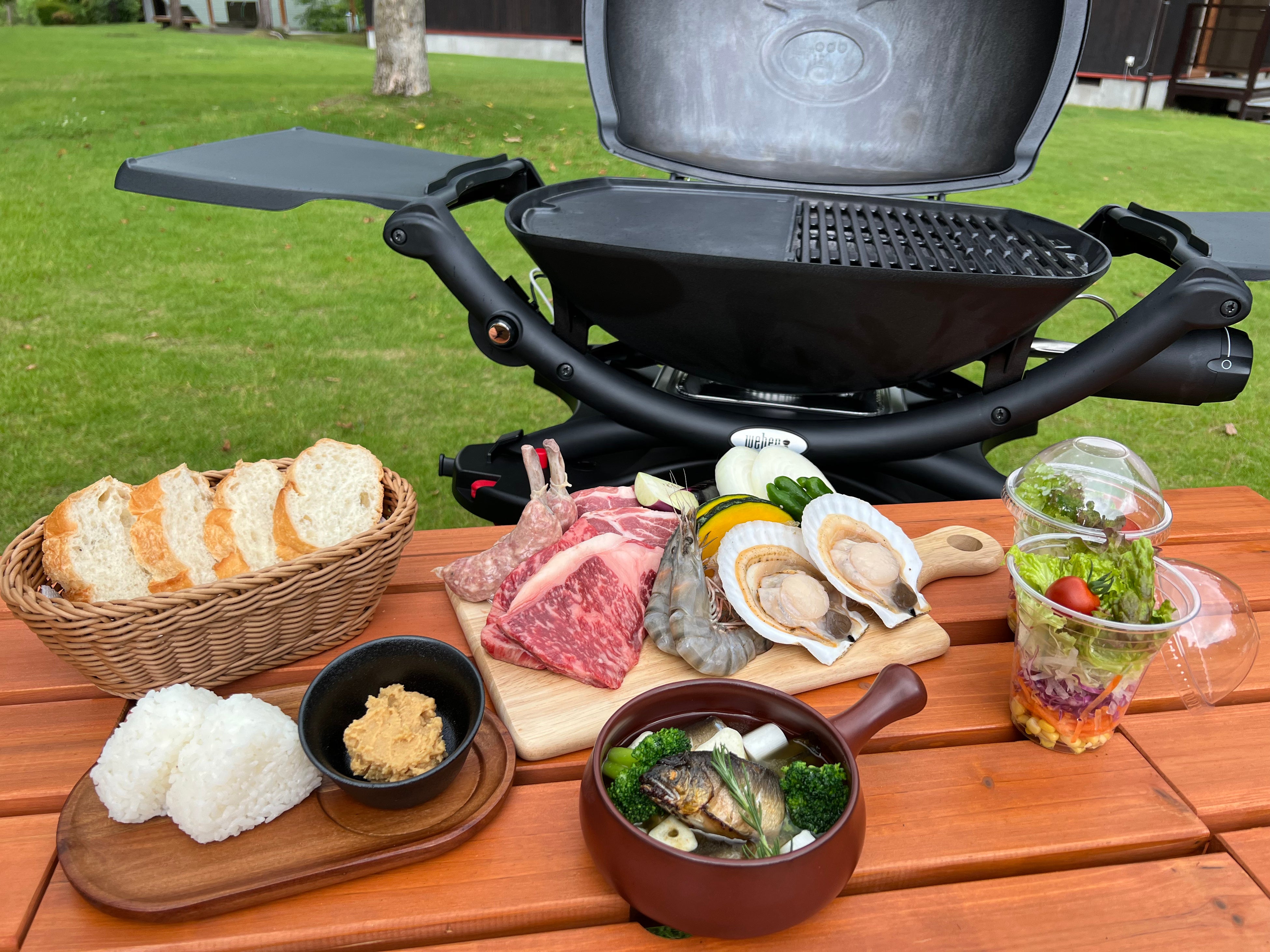 調理にはガスグリルが利用可能。着火や準備、片付けなどは全てスタッフで行いますので、アウトドア初心者の女性やお子様でも安心して、夕食BBQをお楽しみいただけます。
