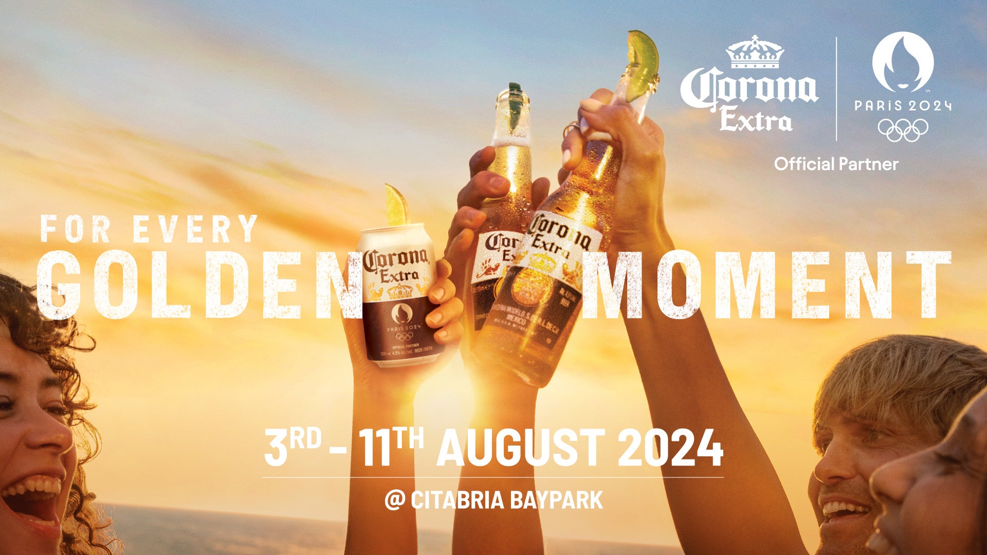 プレミアムビールブランド「コロナ エキストラ(以下コロナビール)」は、8月3日(土)と8月11日(日)の2日にわたり、夕陽に染まる美しい空のもとコロナビールを片手に大切な仲間や友人と、パリ2024オリンピックをコロナビールと心地よい音楽で楽しむイベント、「CORONA SUNSET HOURS MEETS GOLDEN MOMENTS」を開催いたします。心地よいライブ音楽が流れる空間で、コロナビールと夏にぴったりのコロナビールを使った爽やかなオリジナルビアカクテルをご提供します。