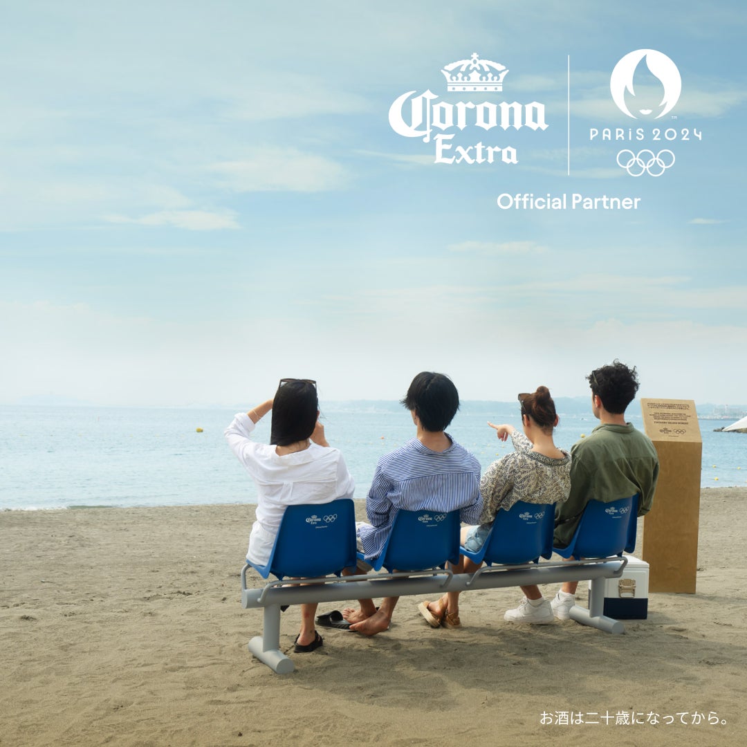 パリ2024オリンピック会場と同じ観客席がアジアで唯一、森戸海岸に8月31日(土)まで登場!この夏は美しい海が一望できる絶景スポットで、コロナビールを片手に極上の「ゴールデンモーメント」を堪能
