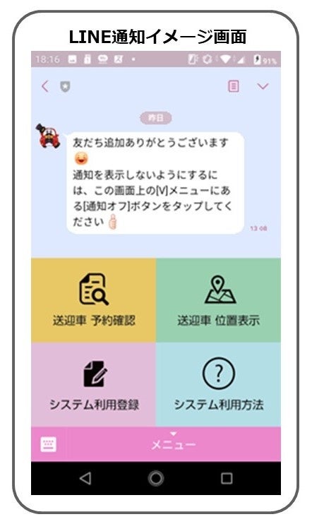スマートフォンのLINEアプリから予約や車両の現在地確認が可能。