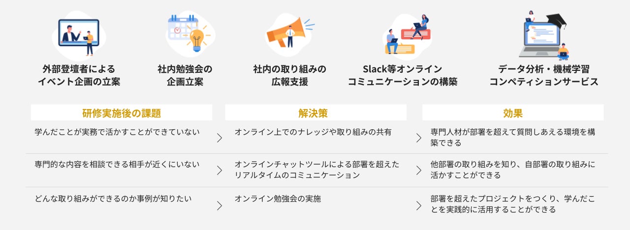 研修後も自主的に学び続ける仕組みや文化をつくるため、参加するメリットを感じる活発なコミュニティの立ち上げと展開を支援しています。