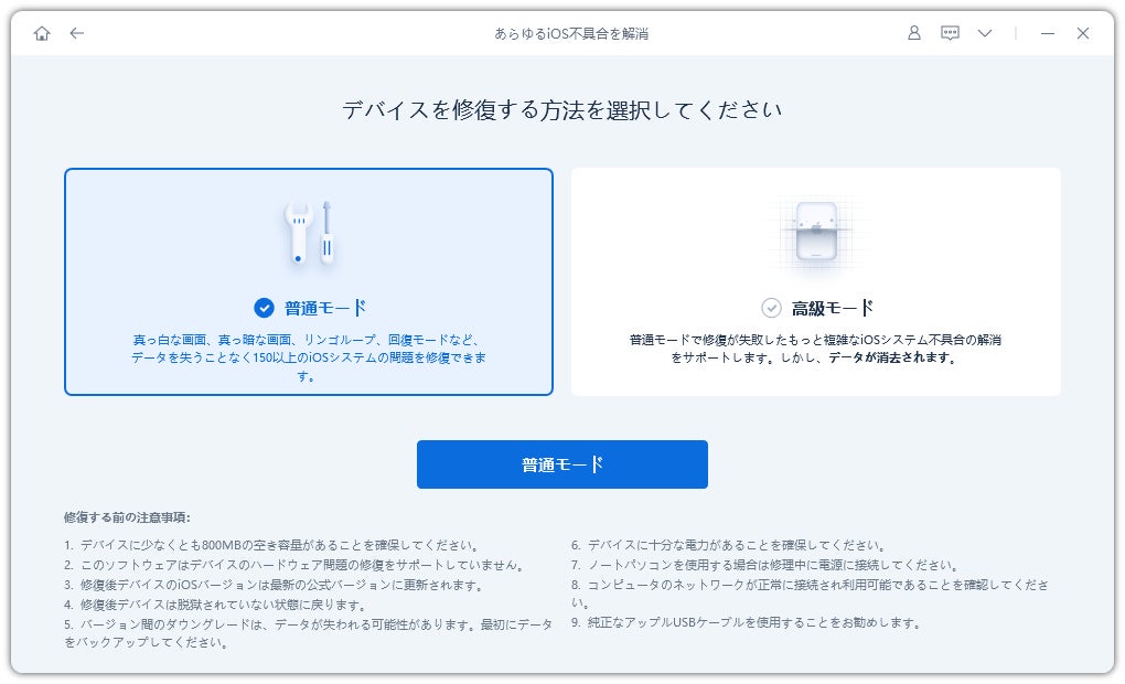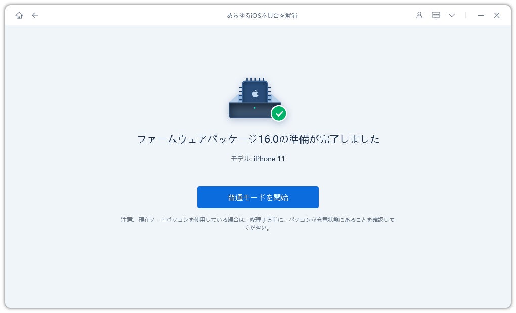 STEP2:「あらゆるiOS不具合を解消」下の「開始」ボタンをクリックします。