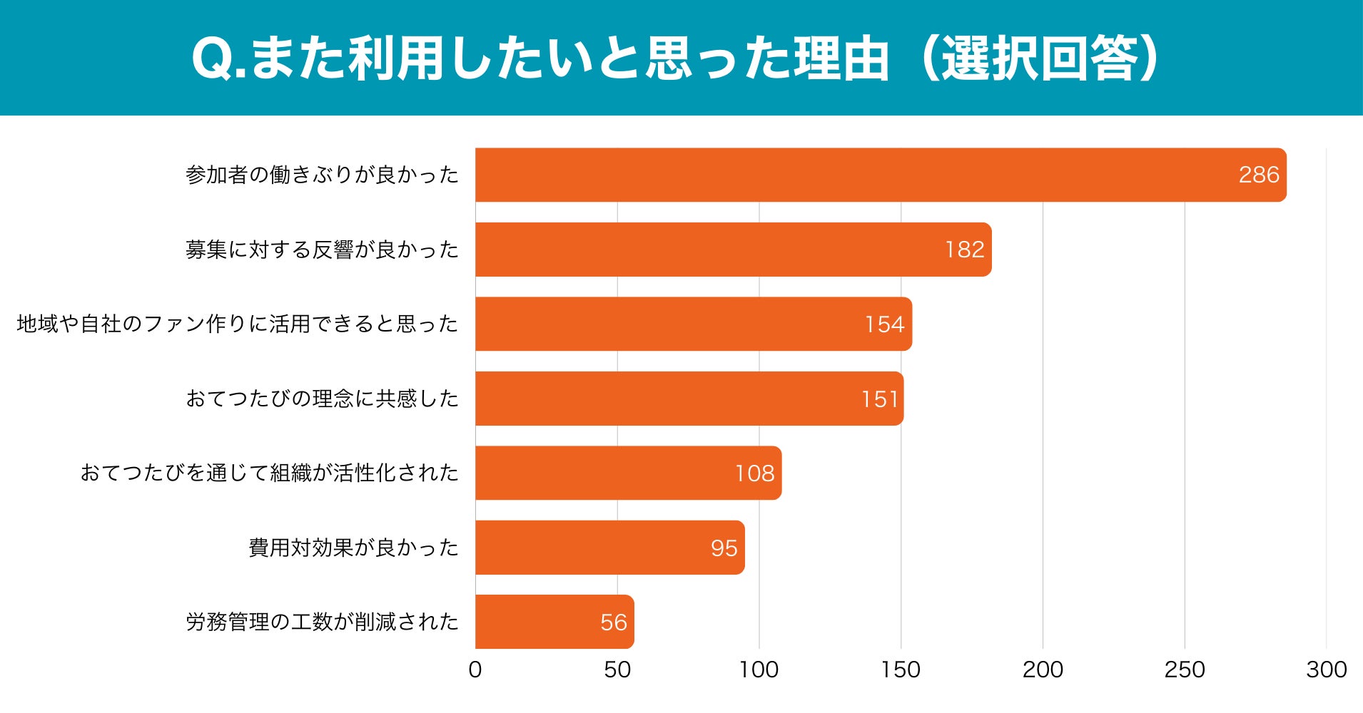 お手伝いと旅を掛け合わせた人材マッチングサービス「おてつたび」を運営する株式会社おてつたび(本社:東京都渋谷区、代表取締役:永岡里菜、以下「おてつたび」)は、「おてつたび」を利用して人材確保を行った事業者へのアンケート調査結果を公開します。