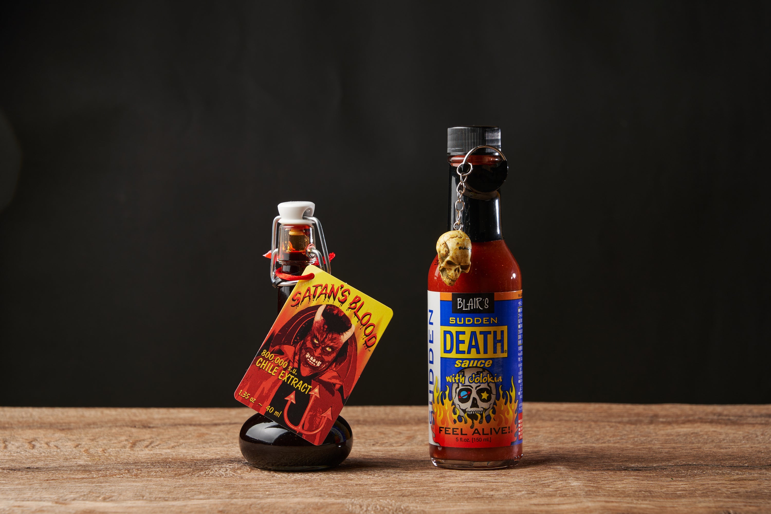 ギネスブックで世界一辛い唐辛子と認定された「ブートジョロキア」とメキシコの激辛唐辛子「ハバネロ」を使用。デスソースの最高峰!激辛党の方も舌を巻く辛さ!