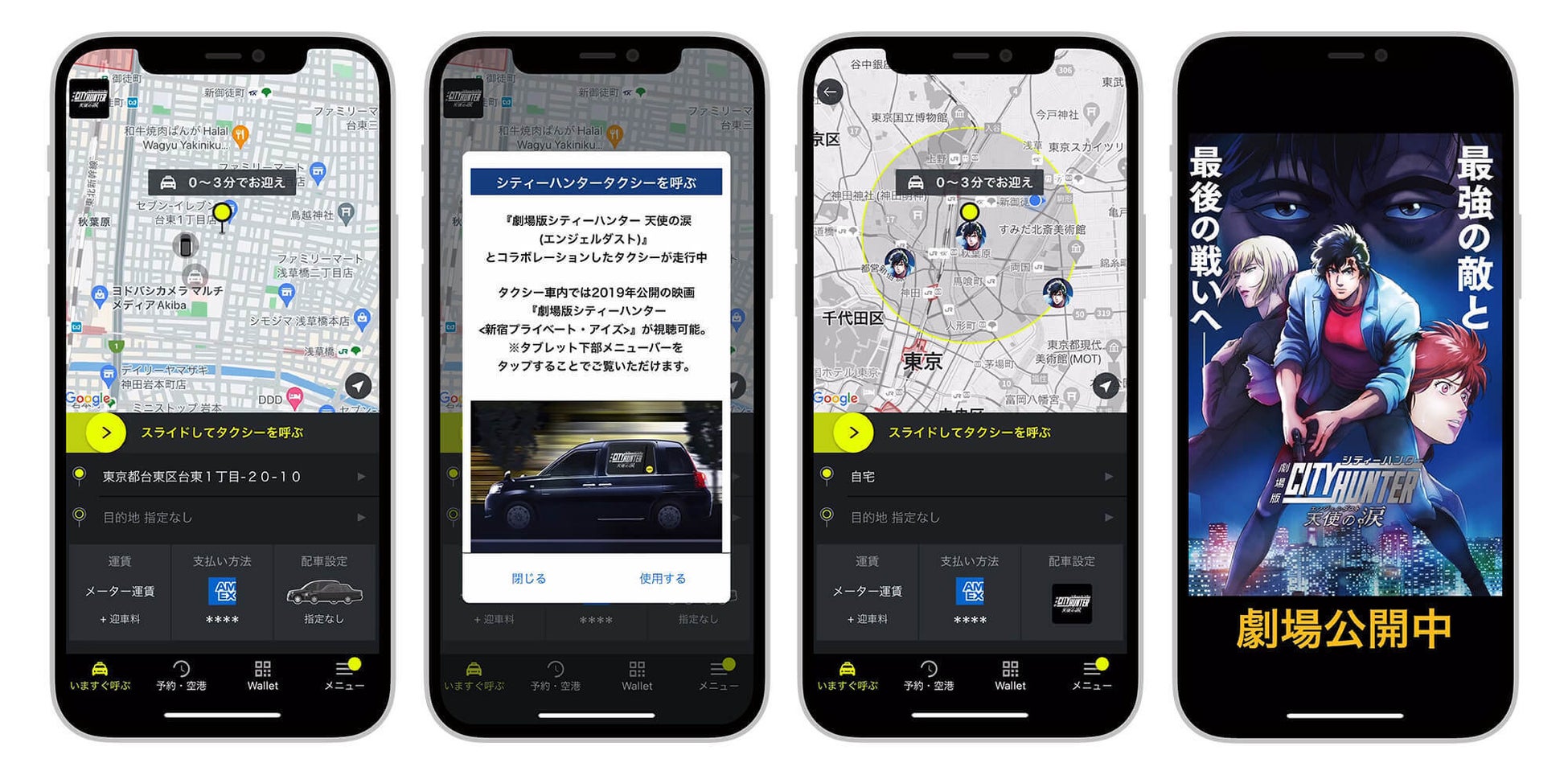 『劇場版シティーハンター 天使の涙(エンジェルダスト)』 とコラボした「シティーハンタータクシー」では、