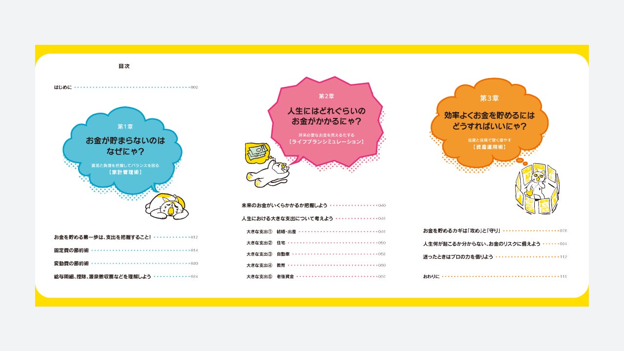 本書の特徴は、一貫しておかねこが主人公に対してお金の相談相手となっています。