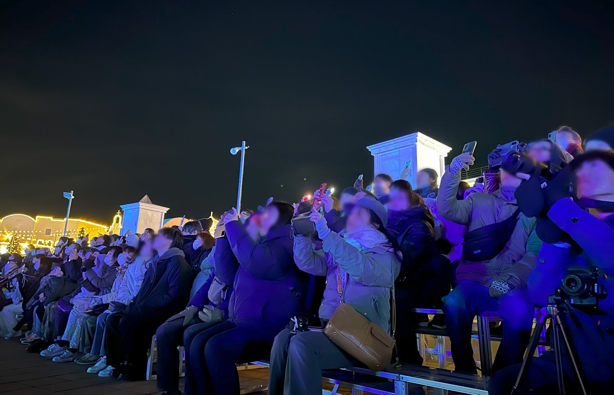 ラグーナ園内のイルミネーションとコラボした500機のドローンショーでは、ペンギン、サメなど海の生物や、園内にある観覧車やお城などを、最新技術のドローンで冬の夜空に描き、ラグーナテンボス・ラグナシアならではショーを演出しました。特に最後の「ラグーナテンボス」の文字の演出部分では、園内から歓声が上がり、会場に一体感が生まれました。