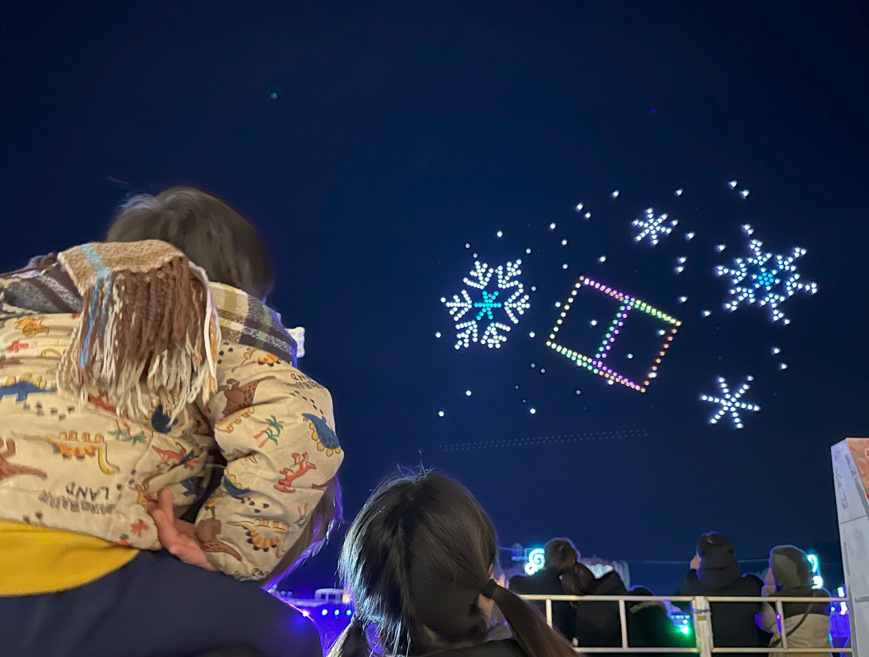 ・ドローンショーは思ったよりゆったりしていて見やすく、目が疲れなかった。