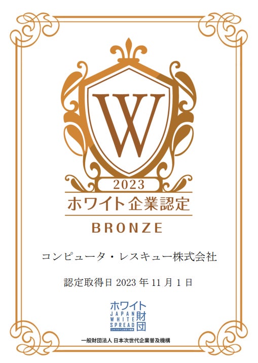コンピュータ・レスキュー株式会社様を「ホワイト企業認定 ブロンズランク 」として認定いたしました!