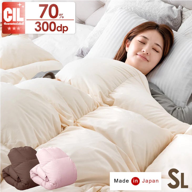 また、ダウンの膨らむ力を示すダウンパワーは300以上となり、冷気が縫い目から逃げにくい立体キルト縫製のため、十分に暖かく快適にご使用いただくことができます。