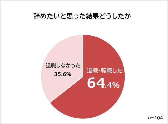 そこで今回、株式会社ビズヒッツ( https://bizhits.co.jp/ )が運営するビジネス上の問題解決を考えるメディアBiz Hits( https://bizhits.co.jp/media/ )は、30代で仕事を辞めたいと思ったことがある看護師104人に「30代の看護師が辞めたい理由」についてアンケート調査を実施。