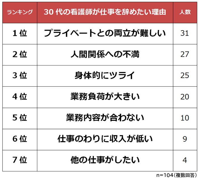 【30代の看護師が辞めたい理由ランキング】経験者104人アンケート調査