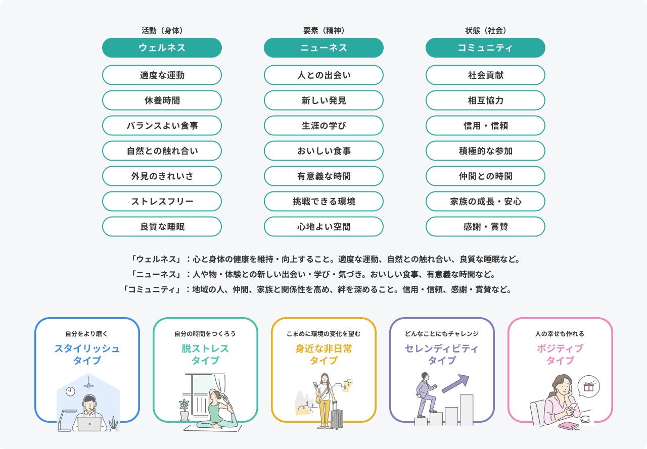 ※2022年8月以降、利用者のアンケート結果などを踏まえて、ウェルビーイングタイプ診断モデルを随時アップデートしていく予定です。