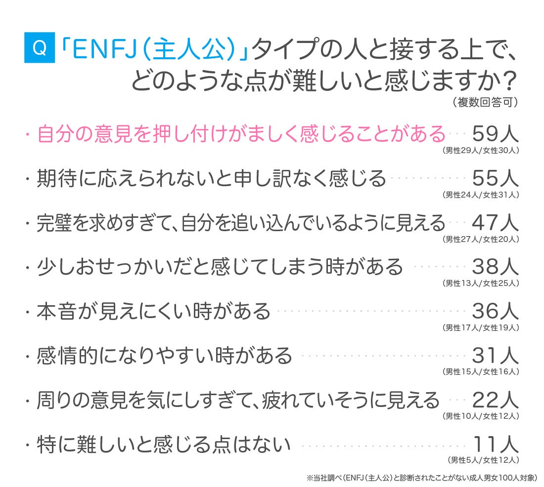 ENFJ(主人公)と診断されたことがない成人男女200人を対象に、「『ENFJ(主人公)』タイプの人と接する上で、どのような点が難しいと感じますか?」というアンケートも実施しました。