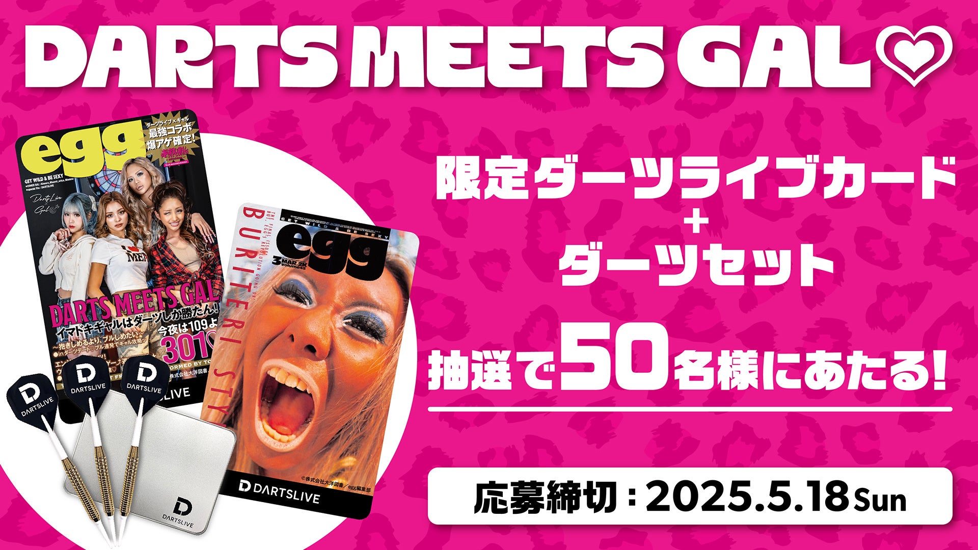 雑誌「egg」の表紙を使用したオリジナルダーツライブカード(2種)入りのダーツセットが当たるSNSキャンペーンをダーツライブの公式XとInstagramで実施します。