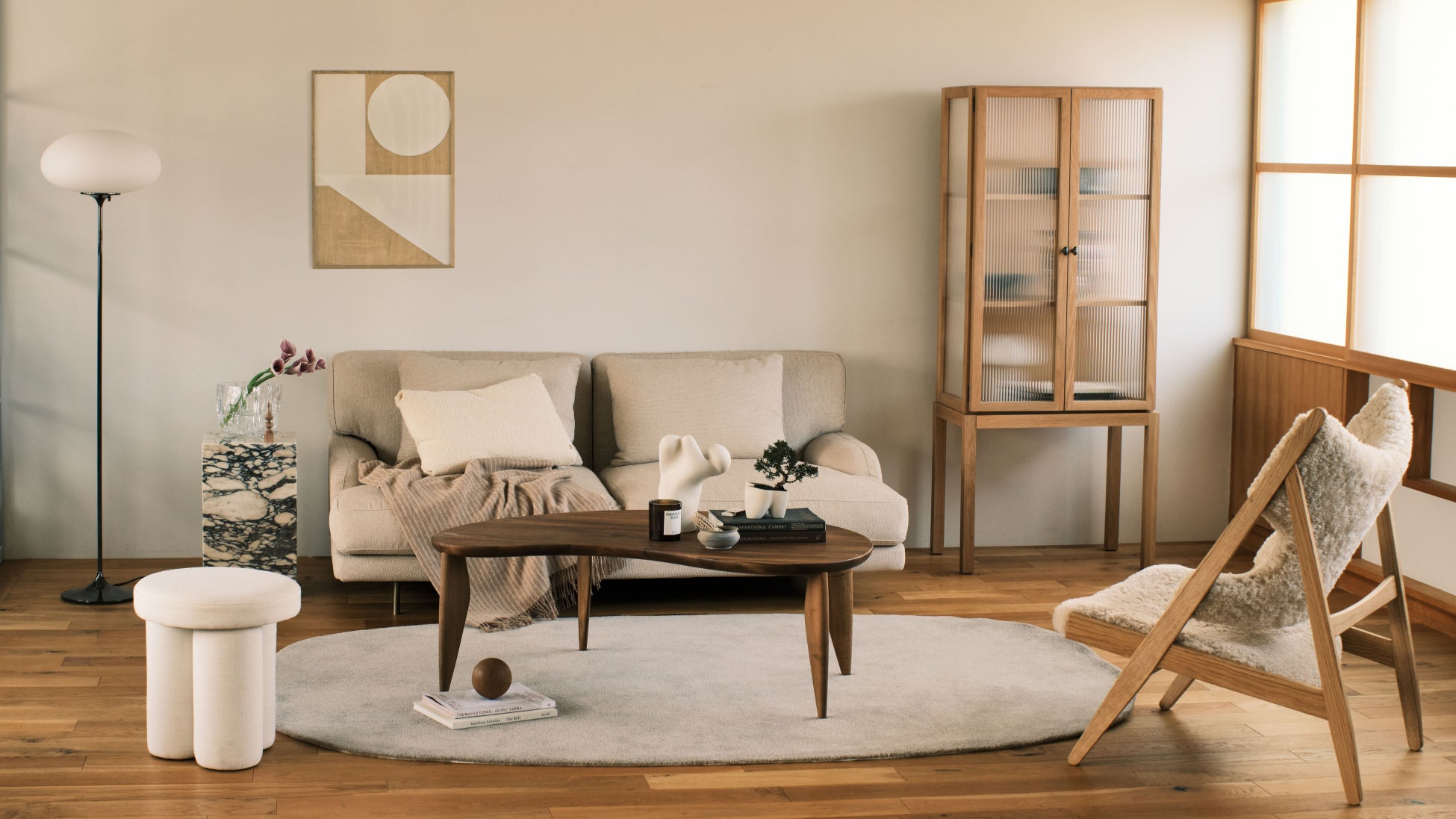 企画の第1弾では、ILLUMSセレクトのニューノルディックブランドを取り入れた「リビング」と「ダイニング」をコーディネート。スタイリングはインテリアスタイリスト・竹内 優介さん、撮影は写真家・室岡 小百合さんに担当いただきました。ニューノルディックブランドの家具をメインに、日本の器や小物なども組み合わせ、ミニマルながら上質でエレガントなスタイリングとなっています。