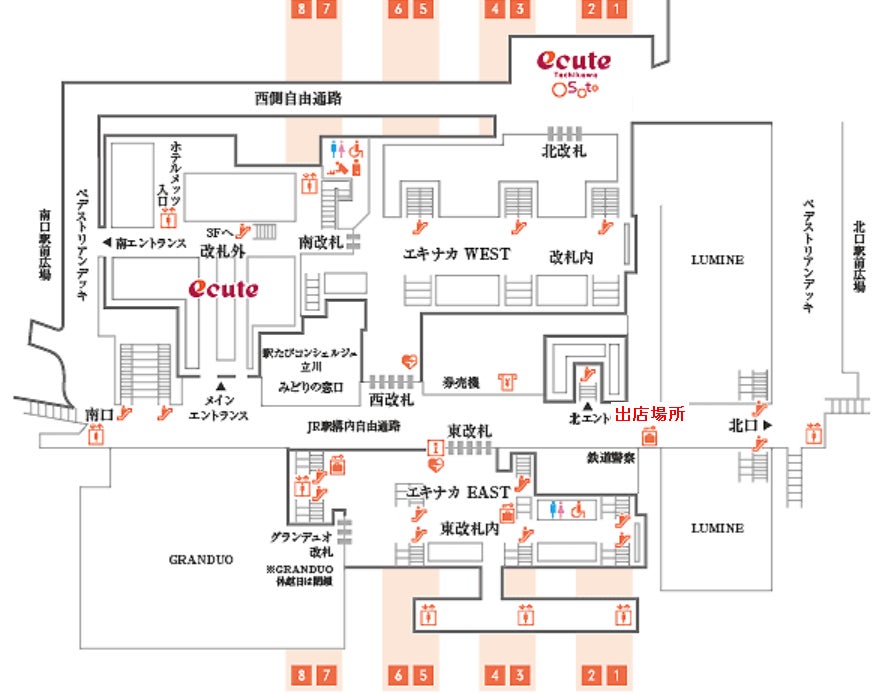 場所: JR中央線・南武線・青梅線立川駅直結「エキュート立川」駅構内自由通路
