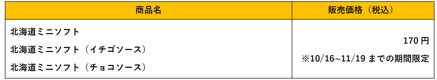 株式会社アレフ(本社:北海道札幌市、代表取締役社長:庄司 大)が展開するハンバーグレストラン「びっくりドンキー」は、10月16日(水)〜11月19日(火)の期間限定で、通常価格270円(税込)の「北海道ミニソフト」「北海道ミニソフト イチゴソース」「北海道ミニソフト チョコソース」を170円(税込)で販売します。