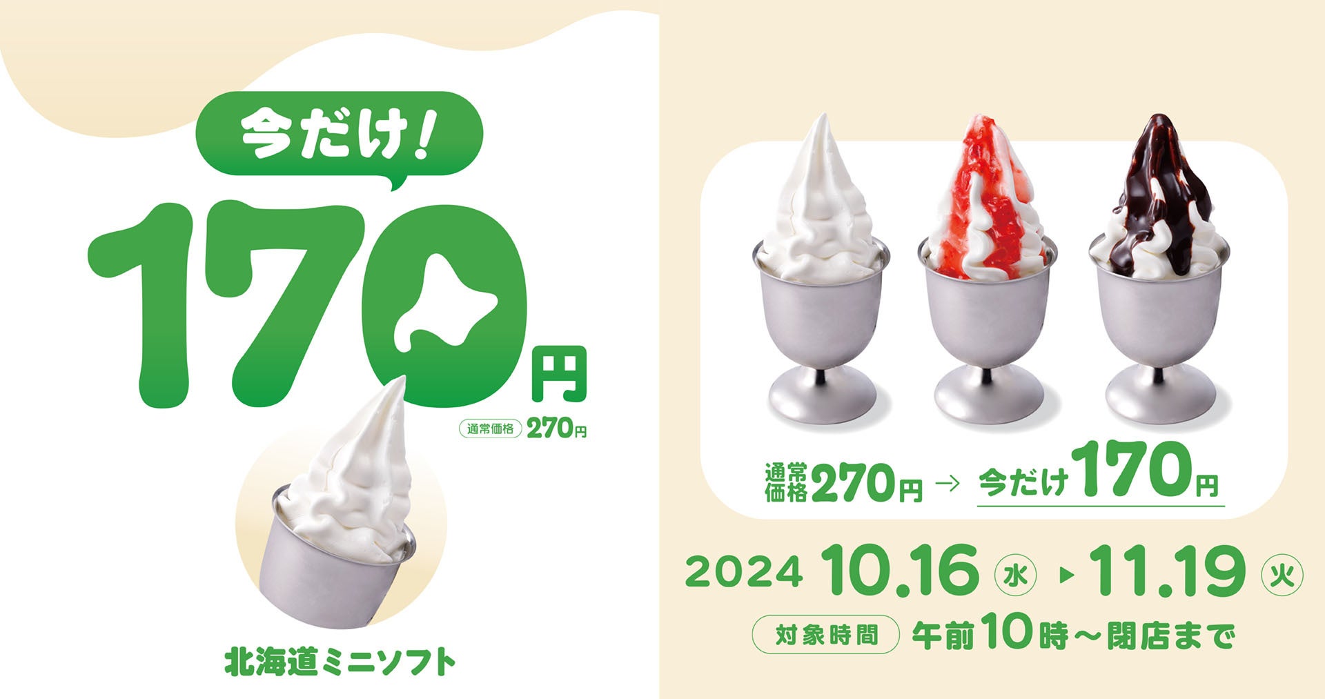 びっくりドンキーの「北海道ミニソフト」が100円引きに!今だけ3種類それぞれ170円でお得に食べられる 10/16(水)〜11/19(火)の期間限定で販売