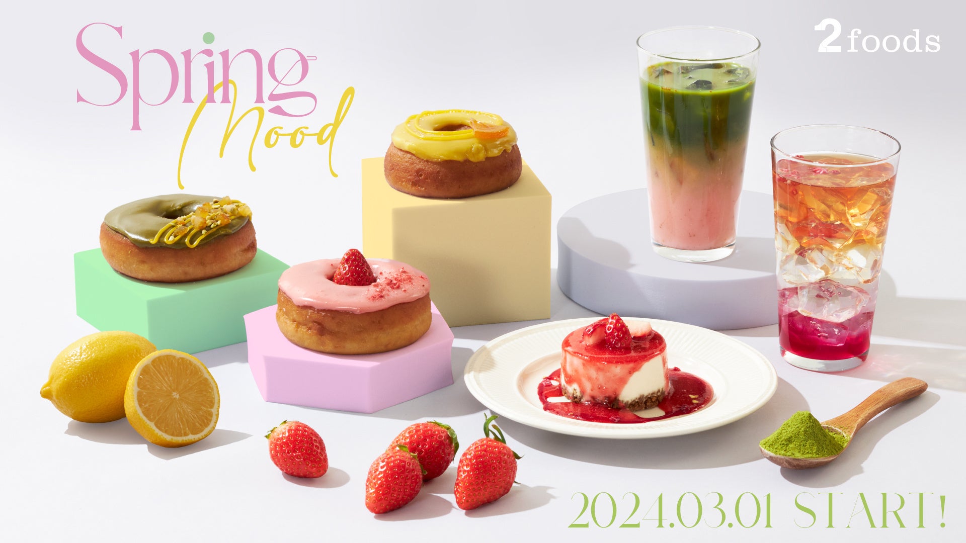 プラントベースフードブランド「2foods」から、旬の国産いちごやオーガニック茶葉を使用した春のムードが楽しめる限定ドーナツなど3月1日(金)より発売開始