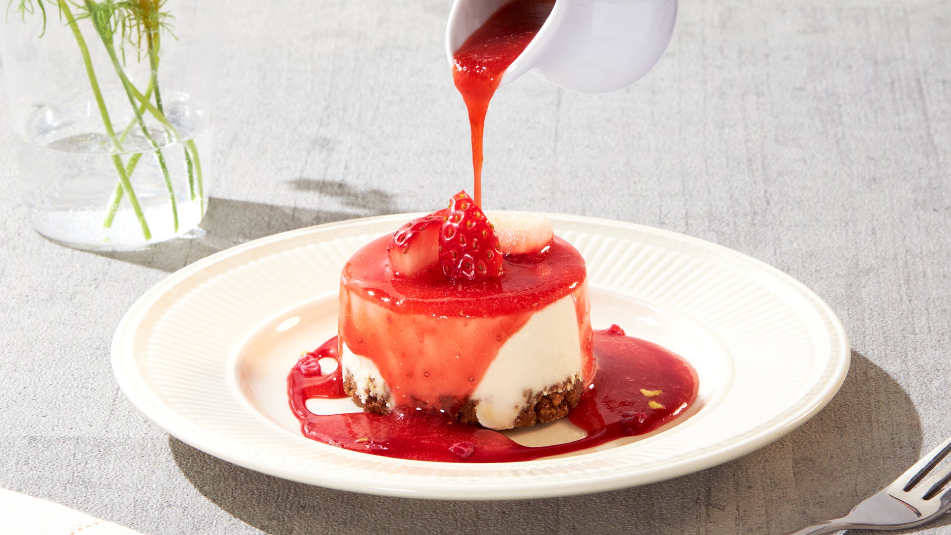 2023年11月に初登場し、大好評のプラントベースレアチーズケーキ「濃密レアチーズケーキ」から春の新商品「濃密レアチーズケーキ 贅沢ストロベリー」が登場いたします。濃密な2foodsオリジナルレアチーズケーキに、ローズが香る自家製ストロベリーソースをたっぷりとかけ、トッピングにはまるまる一粒の国産いちごを贅沢に使いました。気分が高まる春にピッタリな一品です。