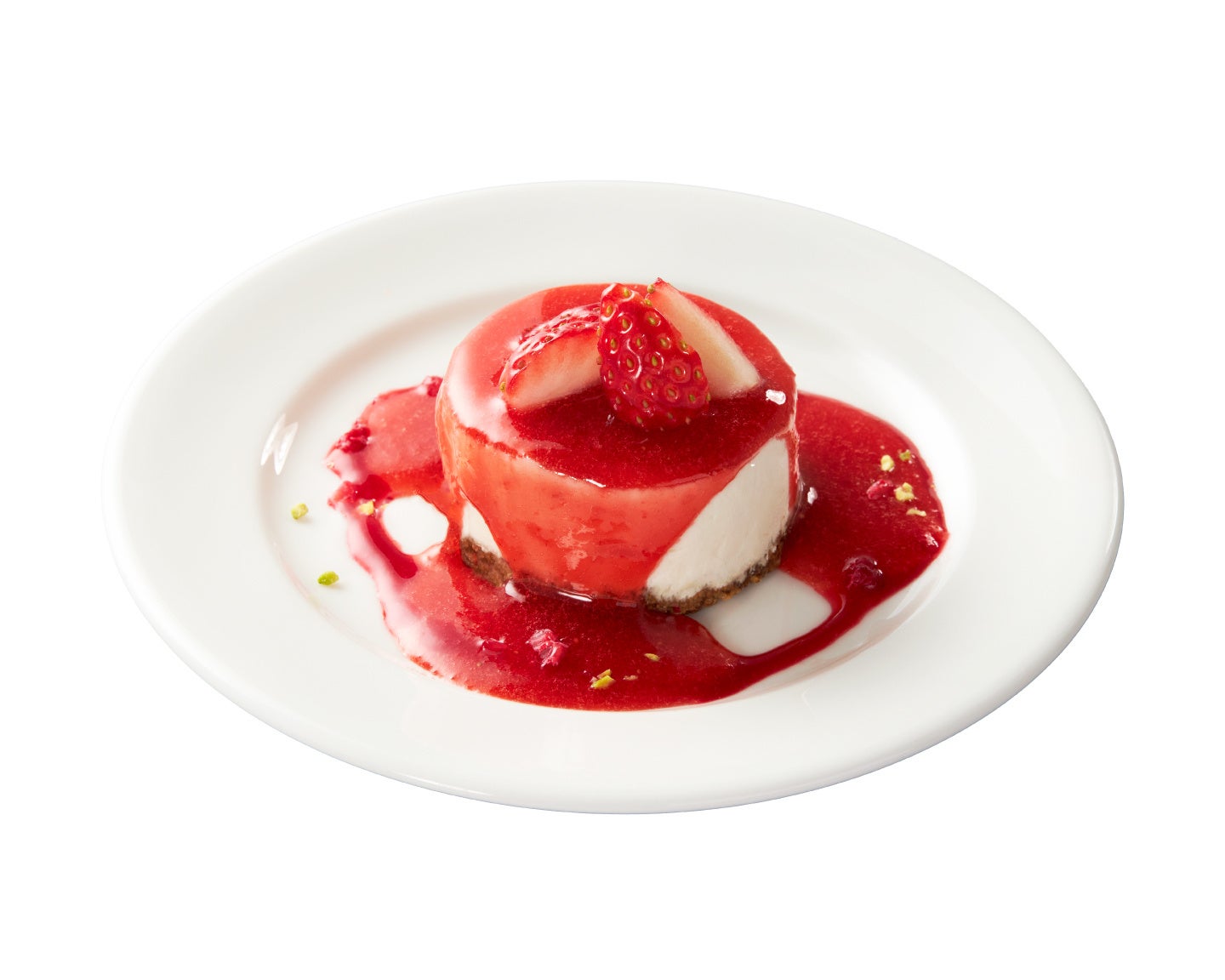 濃厚でクリーミーな味わいのプラントベースレアチーズケーキに春季限定メニューが新登場。 国産いちごを使用した自家製ストロベリーソースは、程よい酸味でなめらかな口どけのチーズケーキと相性抜群。 ふわっと香るローズの華やかな香りがストロベリーソースの甘みを引き立てます。 ラズベリーソースとピスタチオで彩りを添えた、贅沢ないちご尽くしのスイーツです。