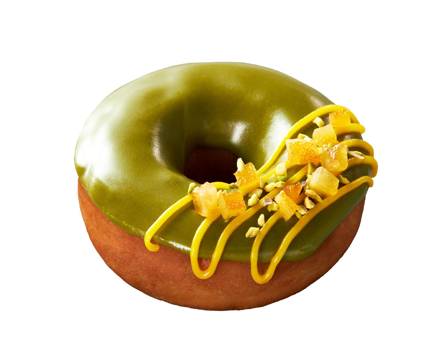 濃厚で深みのある抹茶の香りとパッションフルーツの酸味が絶妙な春季限定ドーナツ。国産オーガニック茶葉を使用したこだわりの抹茶のほろ苦さと、パッションフルーツピューレのフレッシュな味わいのマリアージュが楽しめます。オレンジダイス、ピスタチオをアクセントにトッピングし、ホッと一息つきながらも、爽やかにリフレッシュできるようなドーナツです。