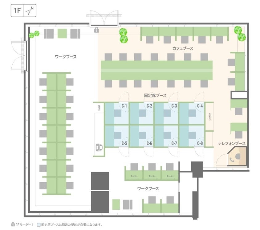 席数:【コワーキングスペース】51席(固定席8席を含む)