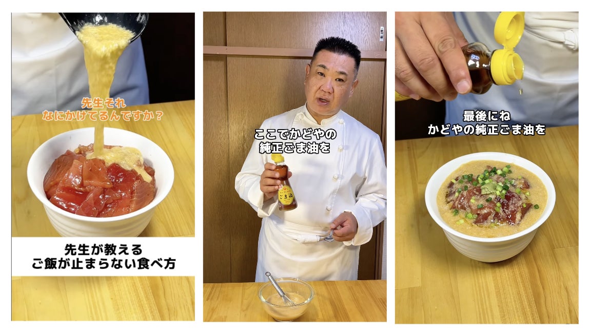 SNS総フォロワー50万人を超える高松先生が若年層ファン獲得のための「かどやの純正ごま油」を使ったコラボレシピを開発&SNS投稿