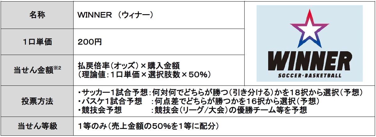 「WINNER」の売上の一部は、スポーツ振興のための助成金として活用されることに加えて、Jリーグや B.LEAGUEのクラブチームに還元され、選手等のための環境整備やクラブ強化などに充当されます。