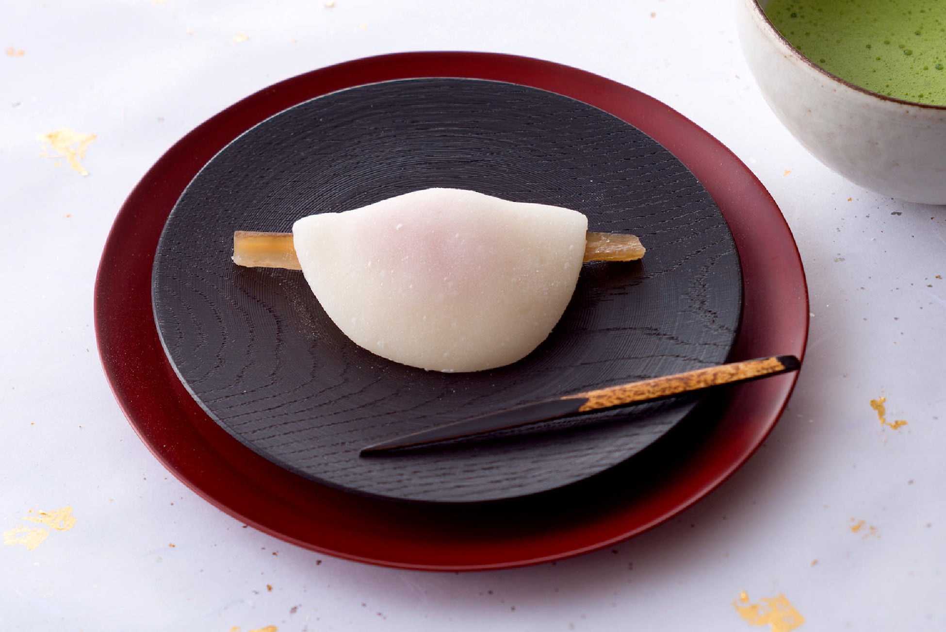 柔らかい求肥(りゅうひ)にやさしい甘さの白味噌餡と紅あん、蜜漬けの牛蒡を入れて包んだ花びら餅は、茶道の初釜でいただく生菓子としても親しまれております。