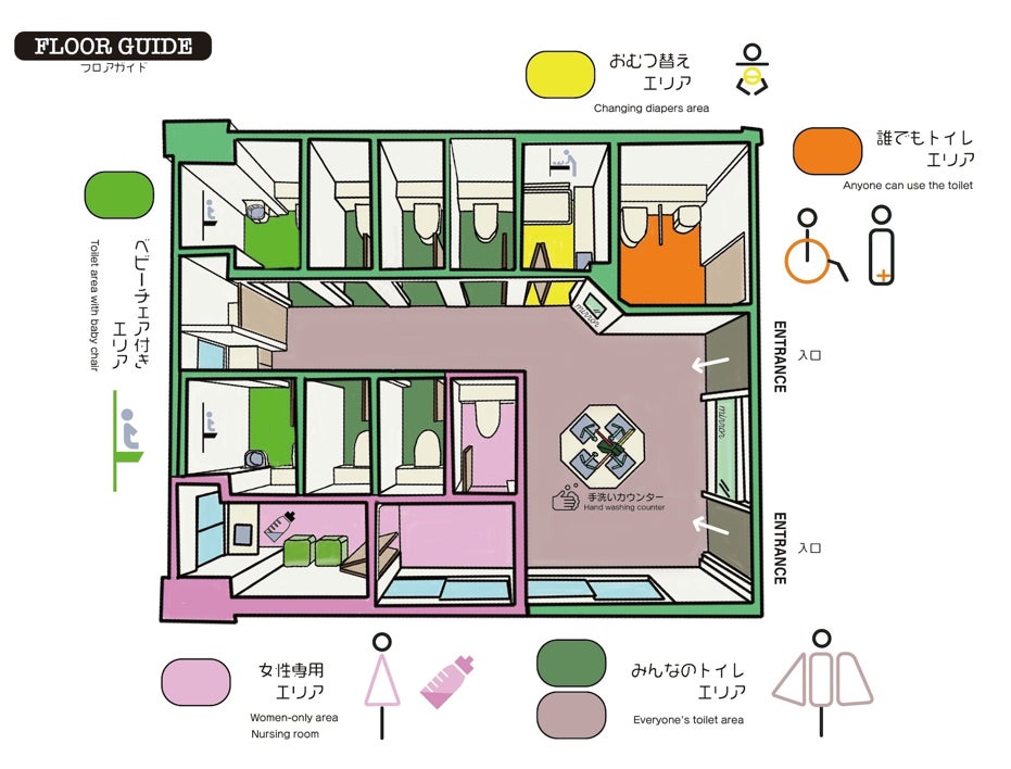 今回オープンした「みんなのトイレ」は、トイレという区切られた場所をつくるのではなく、みんなが集う場所との境をなくし、オープンスペースとすることで性別ごとの設備という意識を解消することを目指しました。