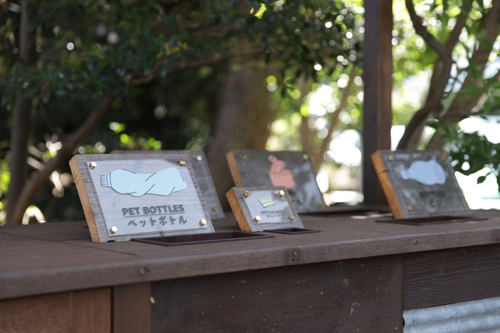 投入口にはポップなイラストを添えて、ただゴミを捨てるのではなくゴミを分別し集めた資材をリサイクルして再利用をする場所として活用いただきたい想いで設置をいたしました。