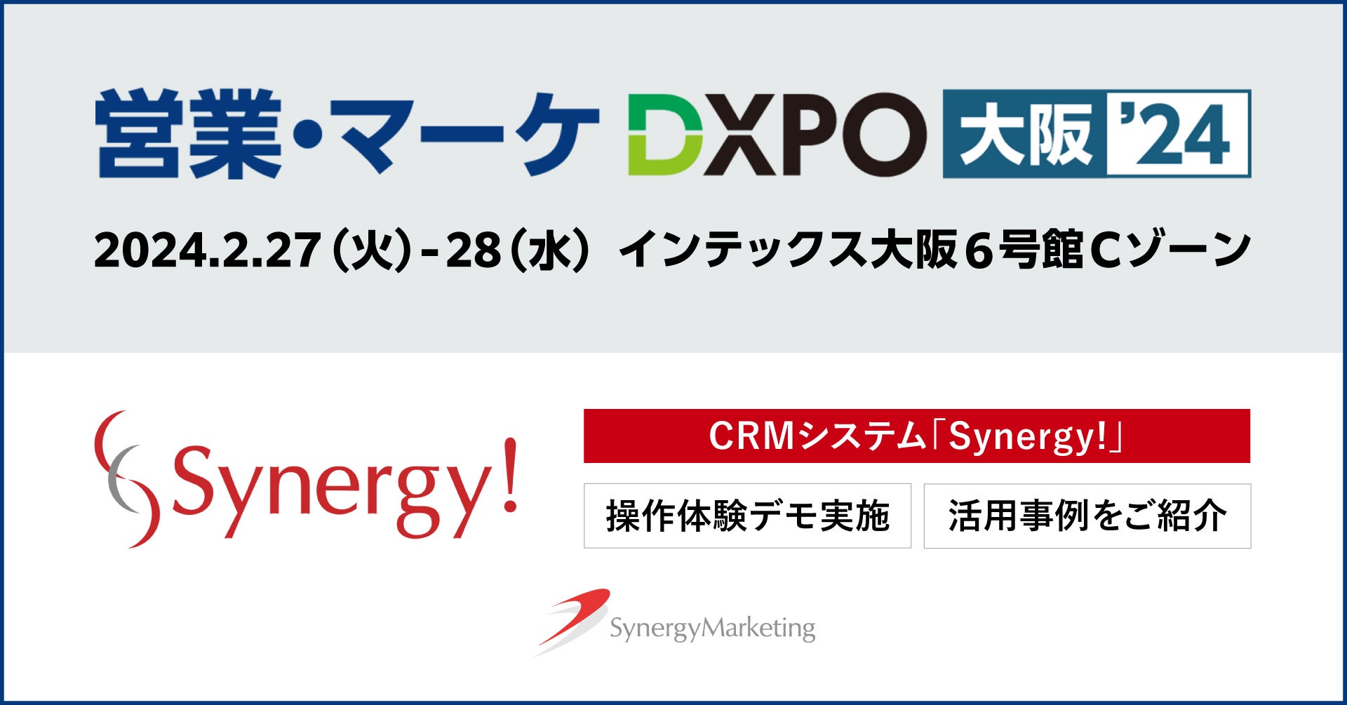 シナジーマーケティング株式会社(所在地:大阪市北区、代表:奥平 博史、以下:当社)は、2024年2月27日(火)、28日(水)にインテックス大阪で開催される、売上アップ、業務効率化、DX推進のための商談型展示会「第2回営業・マーケDXPO大阪’24」に出展します。