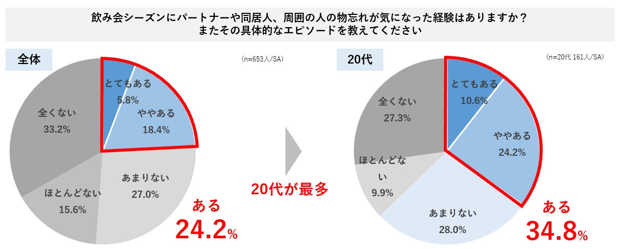 ・飲み会シーズンにおけるパートナーや周囲の人の物忘れについて伺ったところ、4人に1人は気になった経験が