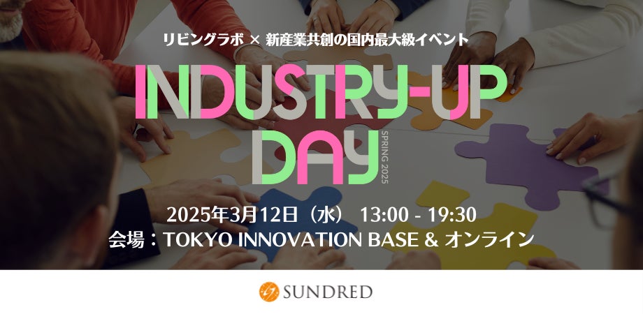 100個の新産業の共創を目指す「新産業のエコシステムビルダー」SUNDRED株式会社(所在地:東京都渋谷区、代表取締役CEO 兼 GM:留目 真伸、以下:SUNDRED)は、「リビングラボ × 新産業共創」に関する国内最大級のイベント「Industry-Up Day Spring 2025」を2025年3月12日にTIBにて開催します。