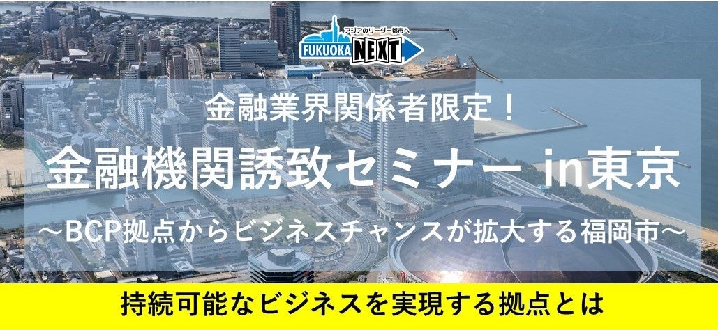 この度、金融庁の「Japan Weeks」の開催期間に合わせ、金融機関のBCP拠点設立に繋げることを目的に、福岡市が有するBCP拠点のポテンシャルとビジネス拡大の可能性、拠点設立に伴う福岡市の支援メニューなどを伝えるセミナーを開催します。