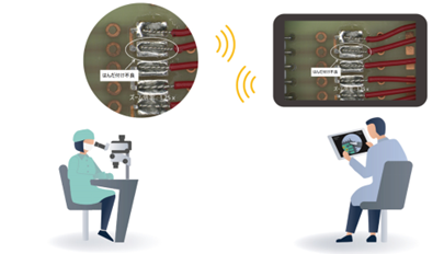 医療機器や電子部品など、先端技術を用いる機器・部品の製造では、その精密さゆえ、実体顕微鏡で対象物を拡大しながら組立作業や検査を行っています。一方で、作業者は厳しい品質管理基準をクリアするため、接眼レンズから目を離し、指示書を確認しながら作業しなければならず、作業者の負担が課題となっていました。