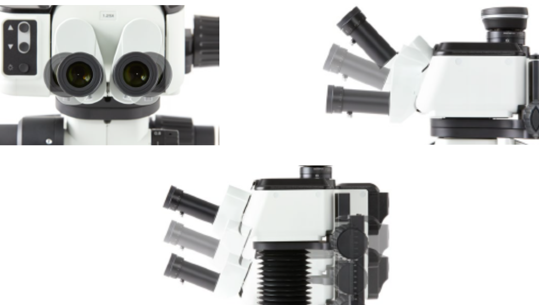 本製品は作業時の身体的負担を軽減する人間工学に考慮したデザインを採用しています。接眼レンズの角度や幅、さらに高さを調節することができるため、作業者の目、首などの身体的負担を軽減し、ストレスフリーな作業を実現します。また、すでに実体顕微鏡のズームボディをお持ちの方であれば、AR三眼鏡筒を交換することで使用できます。