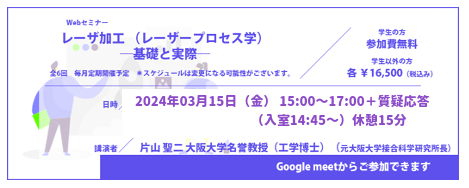 (3/15(金)開催セミナー)「各種材料のレーザ加工性」