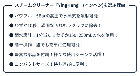 スチームクリーナー「YingHeng」(インヘン)を選ぶ理由: