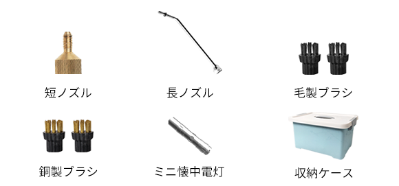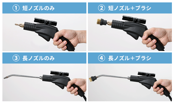 使用シーンに合わせて各種のノズルとブラシを自由に装着することができます。