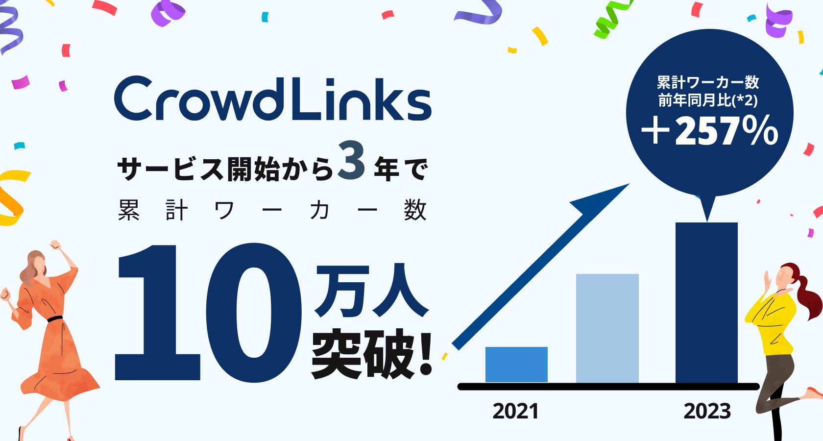 ハイクラスの副業「クラウドリンクス」、サービス開始から約3年で累計副業ワーカー10万人突破!