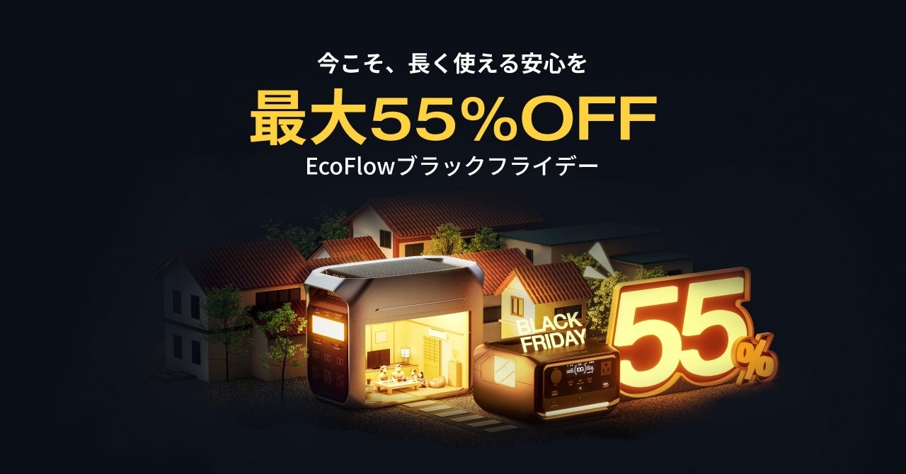 最先端のポータブル電源やクリーンな電力技術を開発するテクノロジー企業、EcoFlow Technology Japan株式会社(本社:東京都中央区、以下EcoFlow)は、Amazon「ブラックフライデー」の開催に合わせて、EcoFlow公式サイトにて11月5日(火)から12月6日(金)、EcoFlow Amazonストアにて11月22日(金)から12月6日(金)まで、対象製品が最大55%OFFとなるセールキャンペーンを実施いたします。