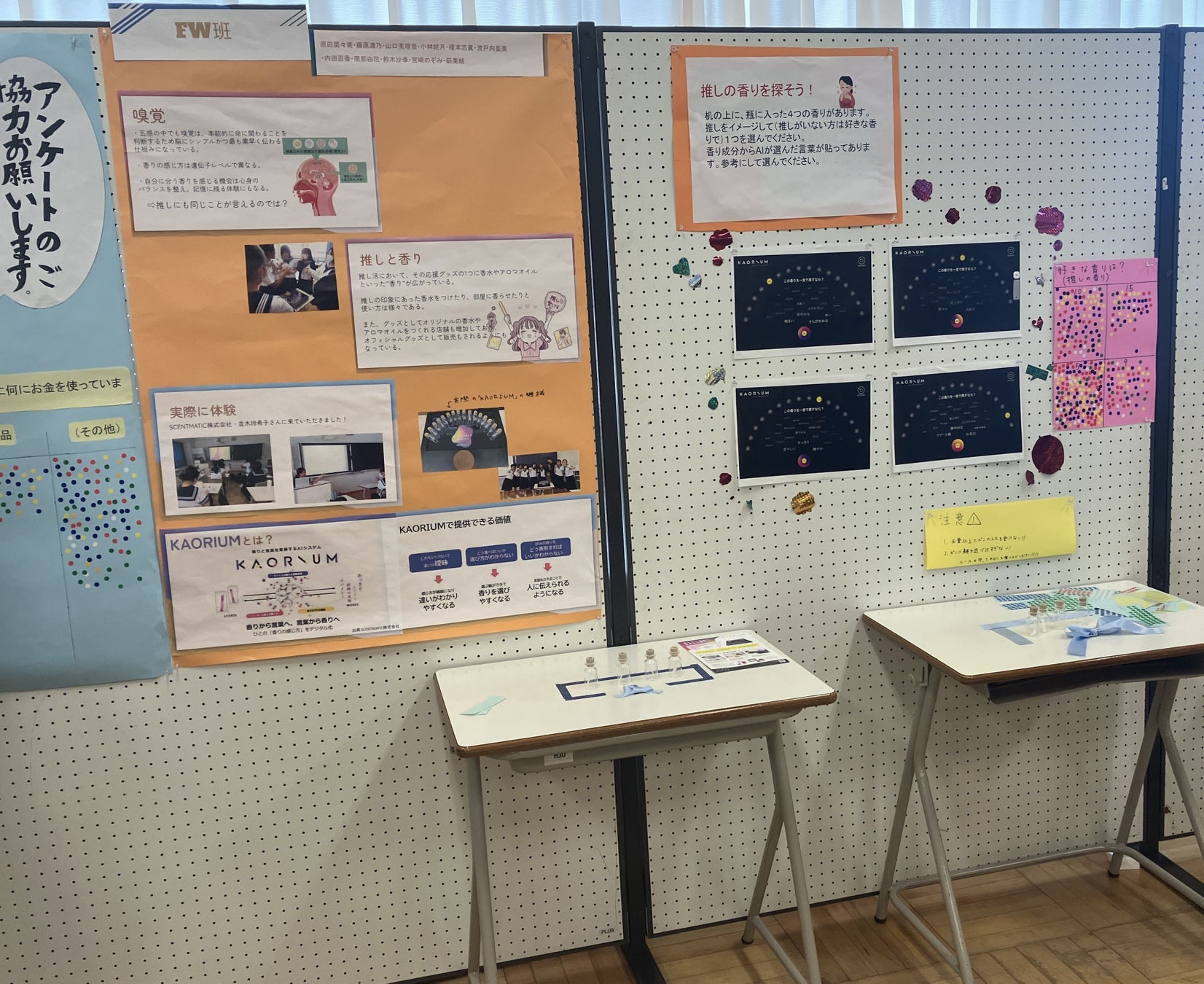 この度、神奈川学園の文化祭において、中学2年E組が「推しがてぇてぇ」をテーマに、KAORIUMを活用した展示を行いました。生徒たちは推し活の歴史から現状までを徹底的に研究し、その成果をフィールドワークと組み合わせて発表いたしました。特に注目を集めたのが、KAORIUMを使用した「推しの香り」探求コーナーです。