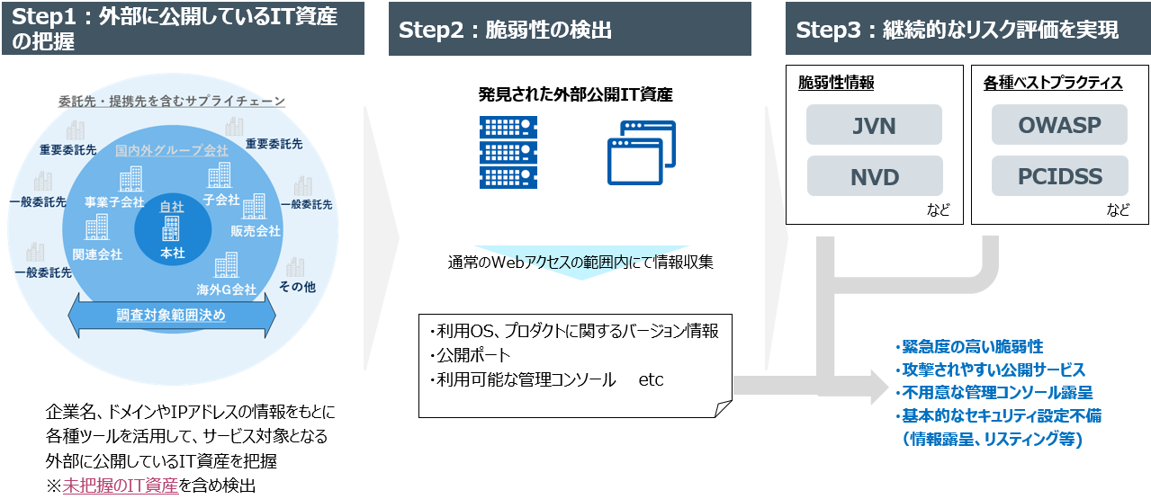 NRIセキュア、インターネットからアクセス可能なIT資産を把握し、脆弱性などのリスクを継続的に検出・評価する「マネージドASMサービス」を提供開始