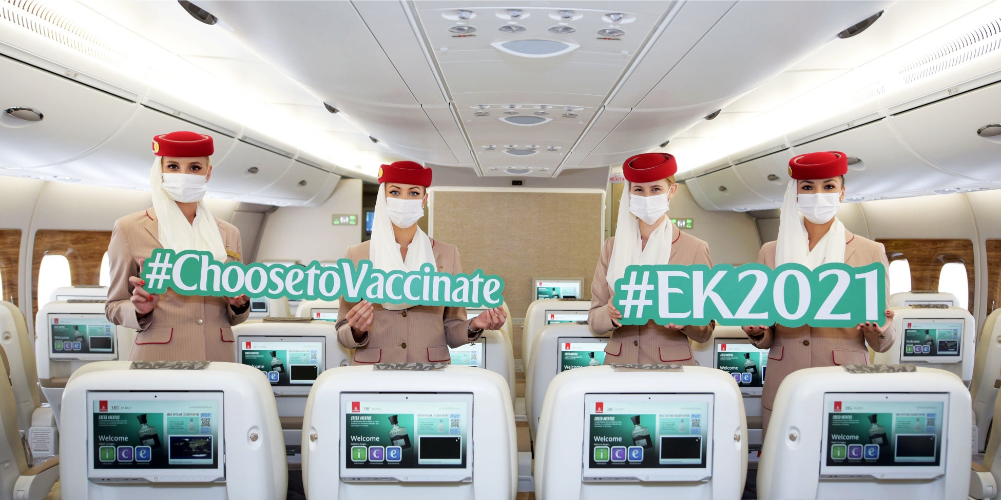 新型コロナワクチン接種に早くから取り組んできたエミレーツは、従業員にワクチン接種を奨励するプログラムを実施し、自社と地域社会を守り、安全な旅行回復を可能にしました。2021年2月、エミレーツ航空は、ワクチン接種の重要性の認識を広め、UAEのワクチン接種活動の成功を記念するため、ワクチン接種済み乗務員による特別遊覧飛行を運航しました。