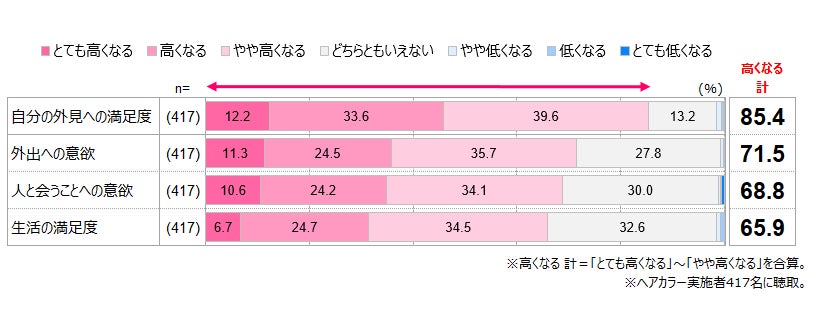 また、この調査の第1弾では、へアカラー後に外出意欲が高まる事を解明しています。