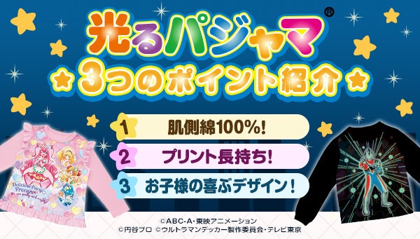 お子様の喜ぶ人気キャラクターデザインの光るパジャマが続々登場!